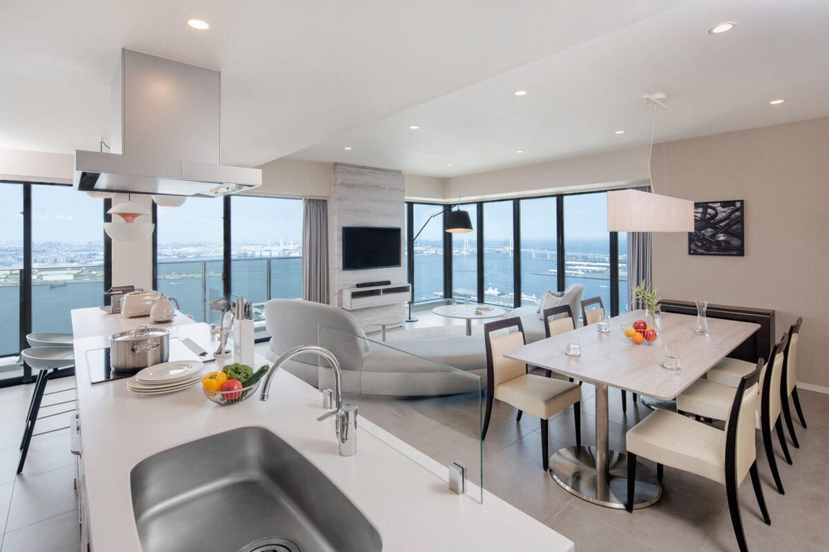 客室や共用スペースはすべて46〜51階に配置されており、港町・横浜を360°のパノラマで見渡せる唯一無二のロケーションです。ベイエリアの海、みなとみらいの高層ビル群、赤レンガ倉庫や山下公園、そして夜には輝く夜景が広がります。時間帯ごとに表情を変える景色が、そのまま旅の演出となるのが最大の魅力です。