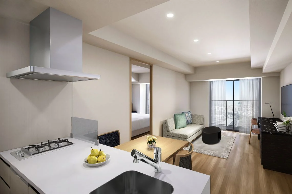 本施設はホテルでも通常の賃貸住宅でもない、30泊以上の長期滞在に特化したアップスケール・サービスレジデンスです。自宅のような居心地と、ホテルライクなホスピタリティサービスを両立させた「Home + Beyond」のコンセプトのもと、国内外のビジネス需要から長期旅行まで、多様な滞在スタイルに応えます。