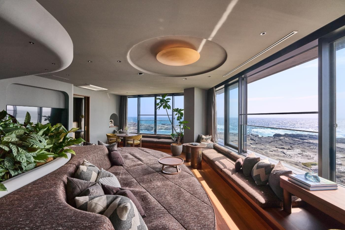 これまで山・森・里山の情景を得意としてきた「ふふ」ブランドにおいて、本施設は初めて海景を主役に据えた立地。太平洋に向かって開けた眺望と、時間帯によって変化する海と空の表情を滞在体験の中心に据えています。 - 全室オーシャンビュー&天然温泉付き