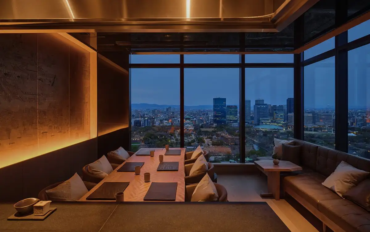 最上級のパティーナスイート(233㎡)にはターンテーブル・本格音響スピーカー・スチームサウナ付きバスルーム・大阪城を望むバルコニーが揃い、空間そのものが体験になります。各フロアの角部屋にもバルコニーを設け、ウェルビーイング志向のゲストには全室備え付けのヨガマットが用意されています。