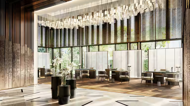 ホテル内には、3,390㎡の宴会・会議スペースと1,845㎡のグランドボールルームを備え、ビジネスイベントやウエディングにも対応する多機能空間を展開予定です。